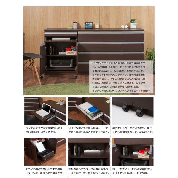 引き出す天板 キャビネットデスク 幅60 ブラウン 完成品 折りたたみデスク パソコンデスク 省スペース プリンター収納 ruk 1