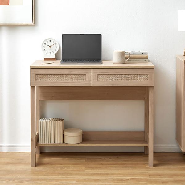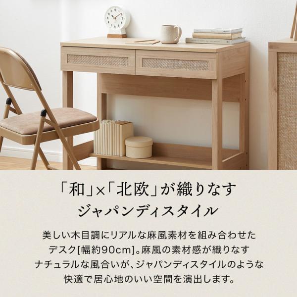 パソコンデスク 幅90cm 麻風素材 麻風 おしゃれ ナチュラル デスク 机 学習机 勉強机 収納付き 引き出し付き コンパクト タップ収納 ワークデスク