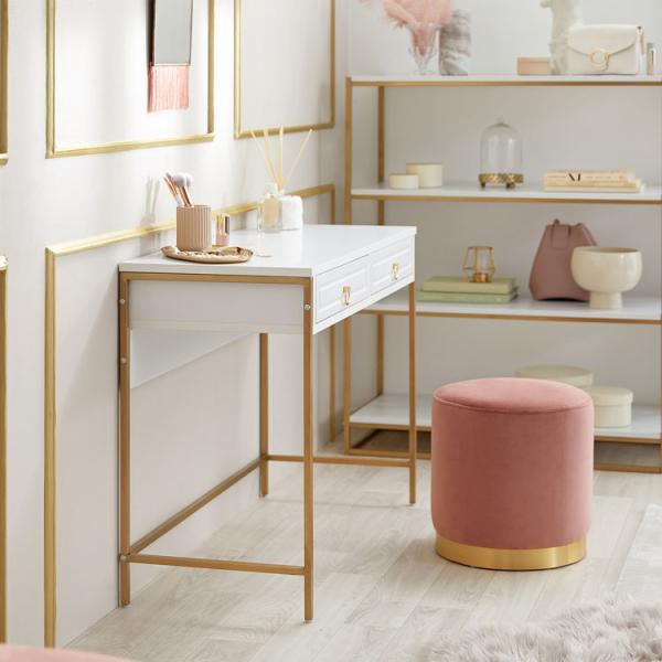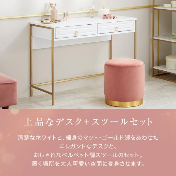 コンソールデスク チェア スツール セット 幅100 ゴールド脚 コンパクト 収納付き 引き出し付き 白 ホワイト グレー ピンク おしゃれ かわいい