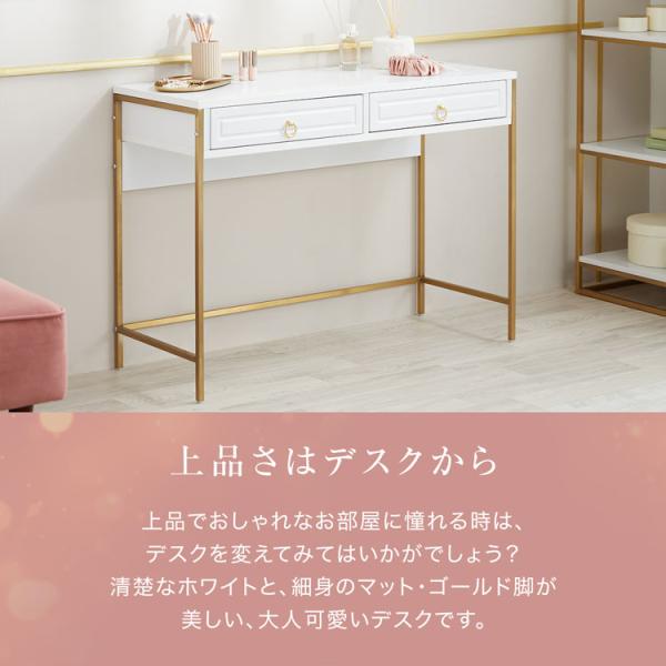 コンソールデスク 引き出し 幅98.5 ゴールド脚 コンパクト 収納付き 引き出し付き おしゃれ かわいい ドレッサー デスク パソコンデスク