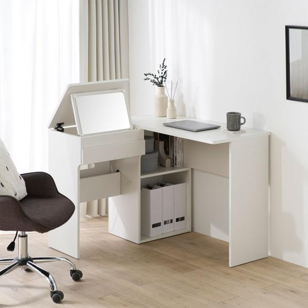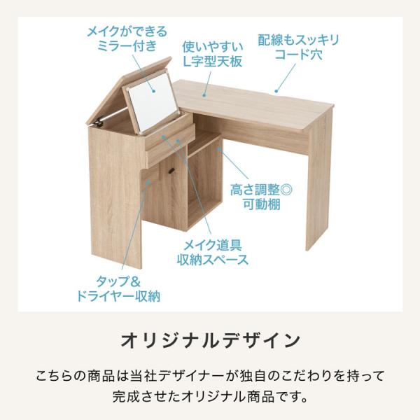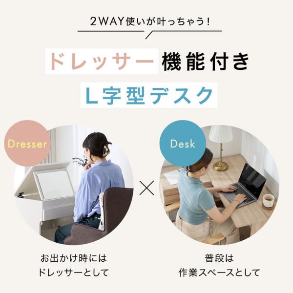 ドレッサーデスク おしゃれ テーブル 化粧台 ミラー 鏡台 幅90cm 幅100cm パソコンデスク pcデスク メイク台 L字 鏡収納 木製 机 木目調 シンプル ナチュラル