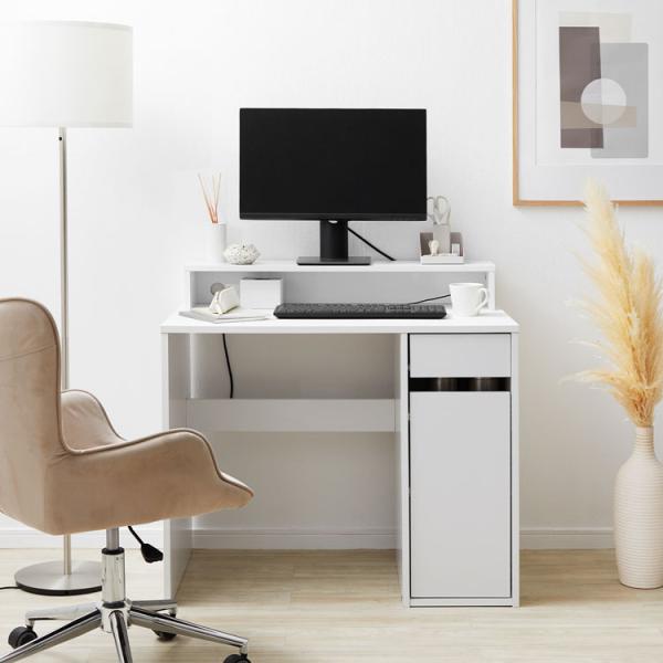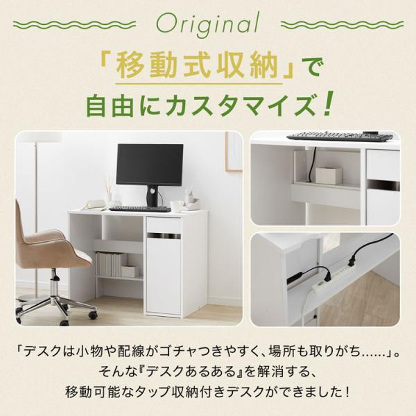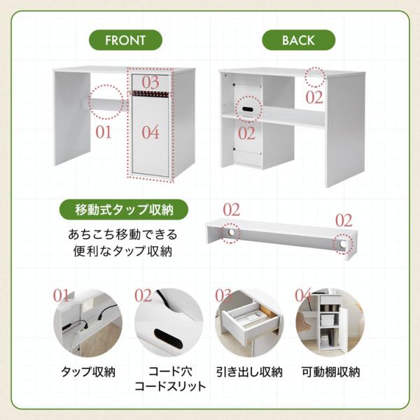 デスク 机 パソコンデスク 90cm幅 コンパクト ワークデスク PCデスク タップ収納 モニタースタンド 机 つくえ 収納 学習デスク おしゃれ