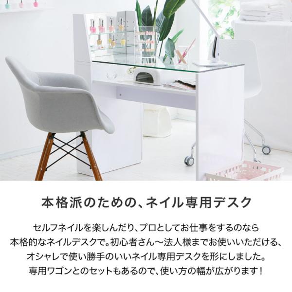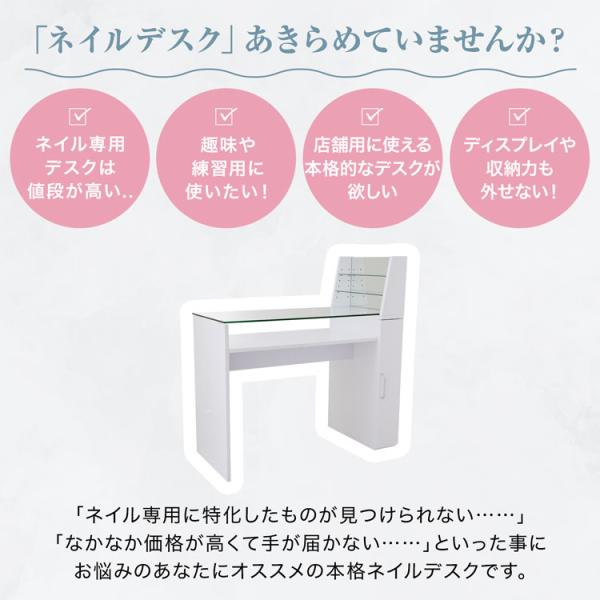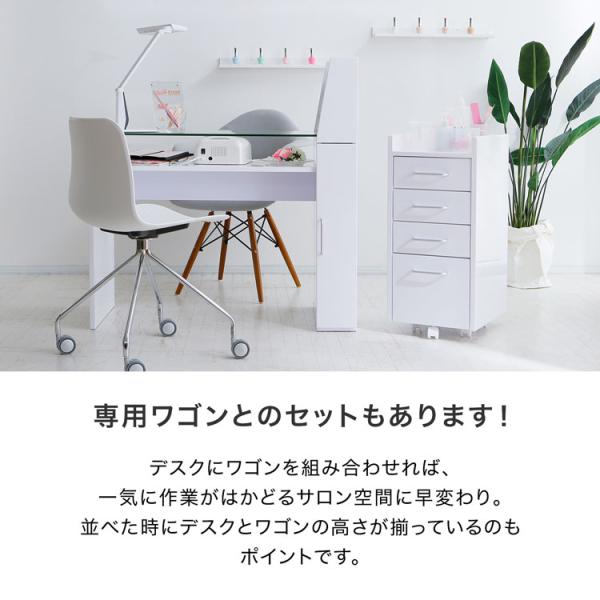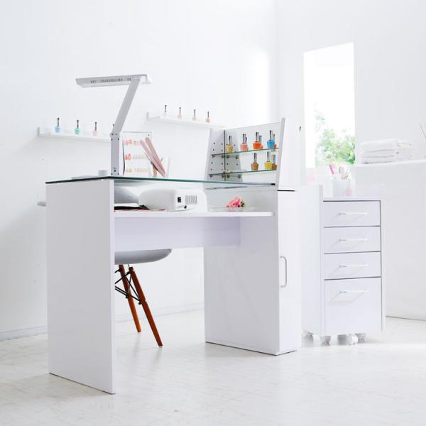 ネイルデスク ワゴン ネイルテーブル デスク ガラス天板 棚付 可動棚 収納 ディスプレイ ネイル専用 ネイルサロンに コンパクト