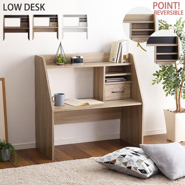 最小限のワークスペース リビング ローデスク 幅83 奥行40 木製 リビングデスク ワークデスク ロータイプ 自宅 シンプル 幅80 収納棚付き ミニデスク 小さい