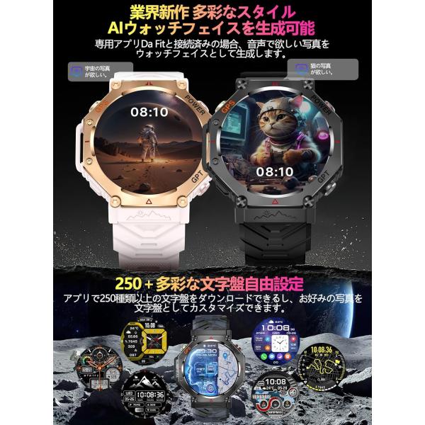 スマートウォッチ【2026年業界最新傑作 ChatGPT AI文字盤 GPS内蔵】高輝度懐中電灯付き 1.39インチ スポーツウォッチ 防水 耐衝撃 Bluetooth5.3通話 530mAh