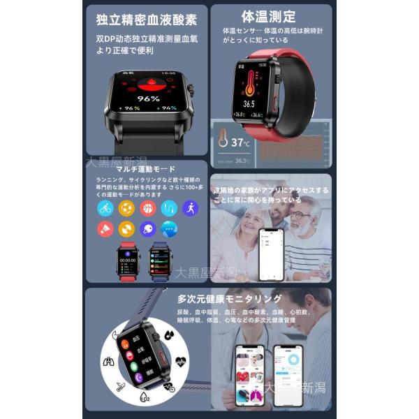 スマートウォッチ 日本製センサー 心電図ECG+PPG エアバッグ付き 血圧測定 心拍数 血中酸素 睡眠管理 健康管理 LINE通知 生理周期 iPhone&アンドロイド対応