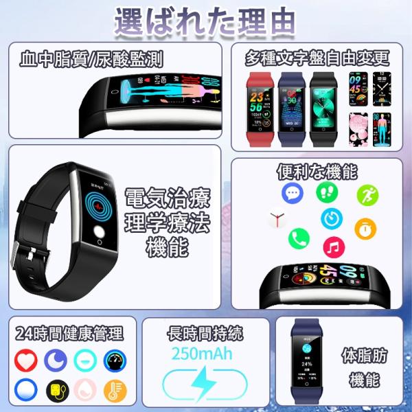 「パルス理学療法」スマートウォッチ 日本製センサー 心電図ECG+PPG 血圧/糖測定 尿酸 血中脂質 体温測定 血中酸素 24時間高精度心拍数 睡眠管理 着信通知