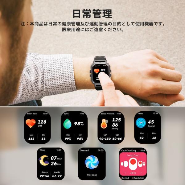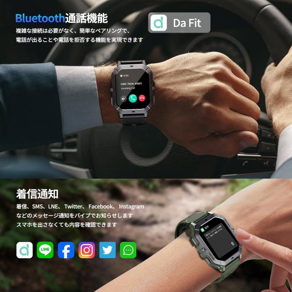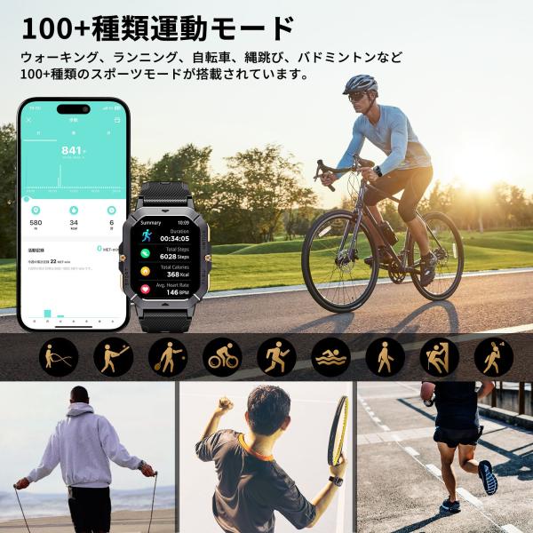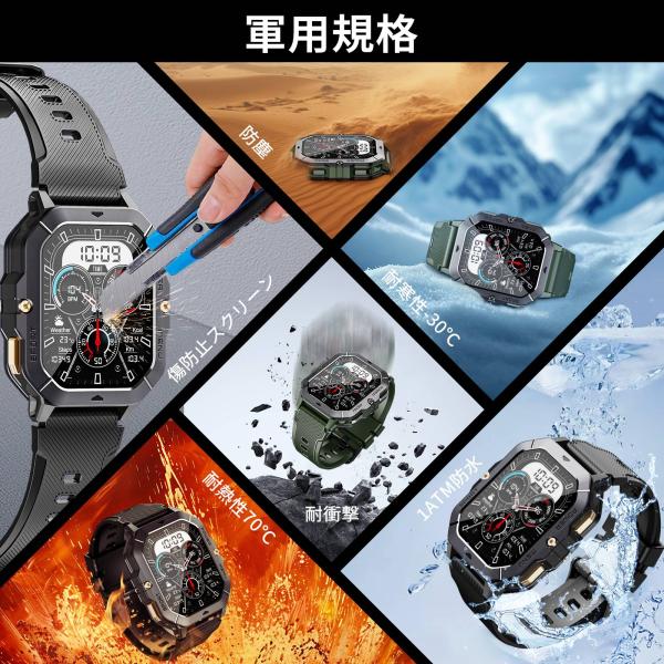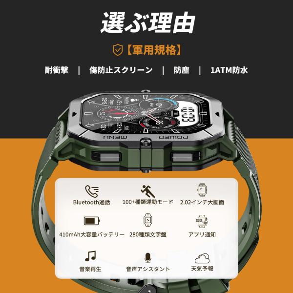 【2.02インチ超大画面】スマートウォッチ 軍用規格 Bluetooth通話機能 運動モード 着信通知 1ATM防水 音声アシスタント マイク内蔵 睡眠モニター 音楽再生