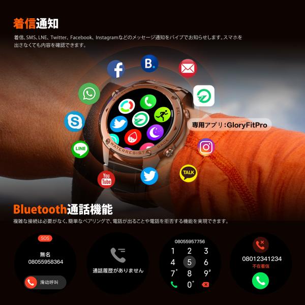 【GPS搭載 2025 性能強化モデル】スマートウォッチ 軍用規格 Bluetooth通話機能 gps連携 1.43インチHD大画面 5ATM防水 高度計 気圧計 コンパス 170+種類運動