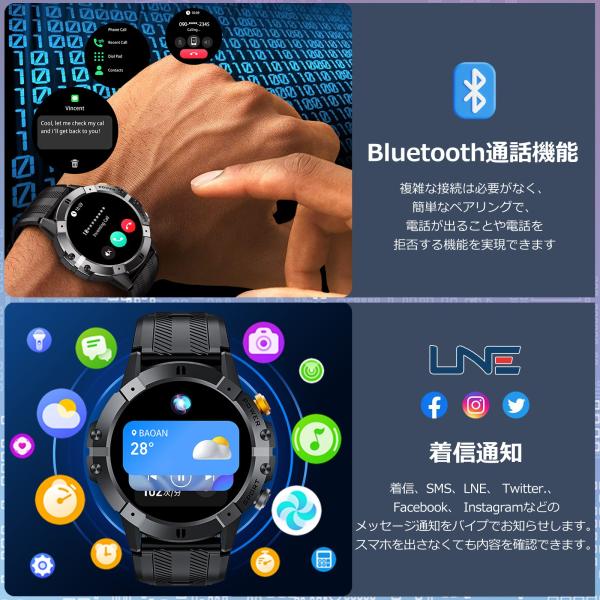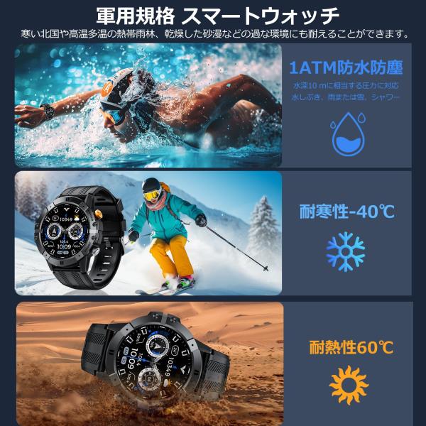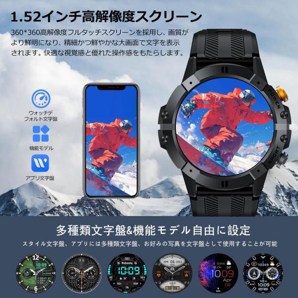 2025新登場 スマートウォッチ 1.52インチ大画面 軍用規格 Bluetooth5.3通話機能 様々な運動モード 着信通知 1ATM防水 音声アシスタント iPhone・Android対応