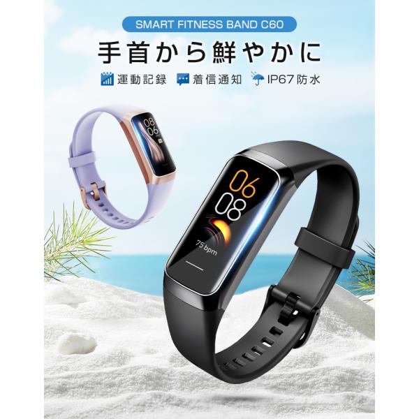 スマートウォッチ 体表温測定 血中酸素 心拍 歩数 カロリー 健康管理 スマートブレスレット リストバンド 腕時計 着信通知 IP67防水 睡眠検測 長い待機時間 C60