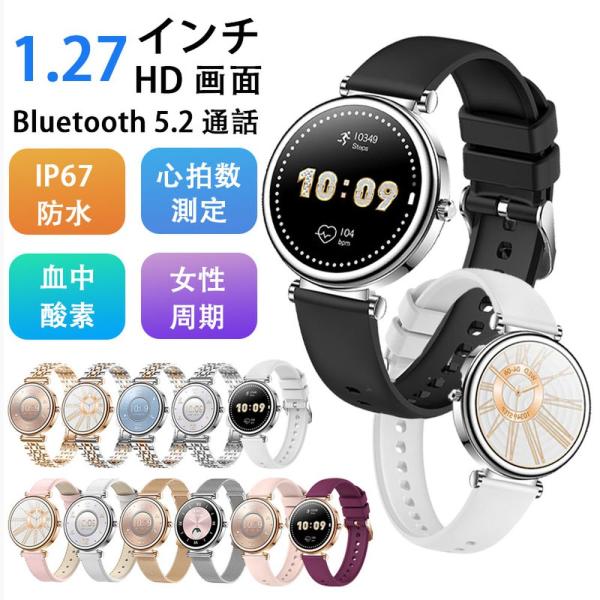 2025年新発スマートウォッチ レディース 丸型日本製センサー Bluetooth5.3通話機能 高精度心拍数 睡眠検測 血中酸素 女性生理管理