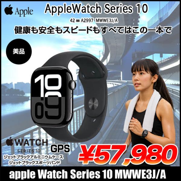 【中古】Apple Watch 10 (GPSモデル)42mm MWWE3J/A A2997 [ジェットブラックアルミニウムケース スポーツバンド] アップルウォッチ10 :中古美品