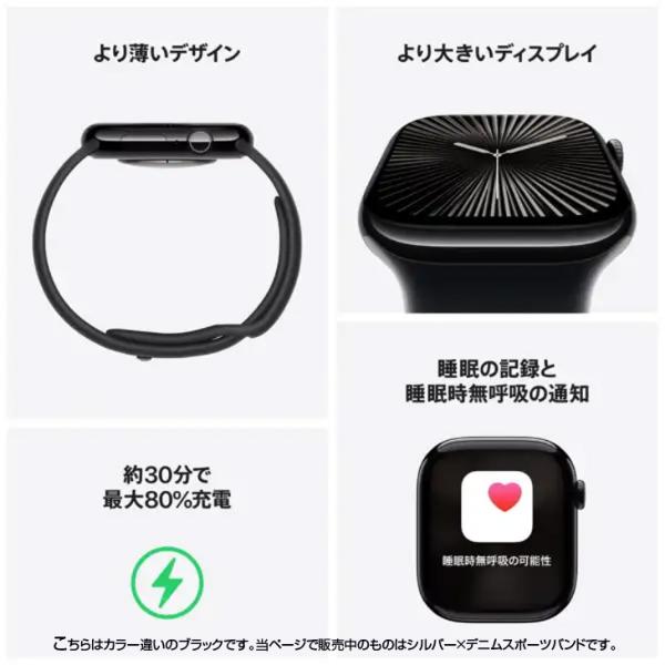 【中古】Apple Watch 10 (GPSモデル)46mm MWWM3J/A A2999 [シルバーアルミニウムケース デニムスポーツバンド46mm(M/L)] アップルウォッチ10:中古良品