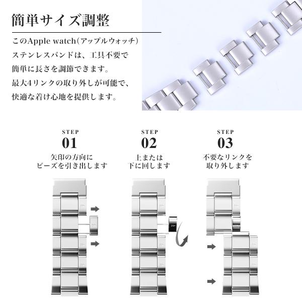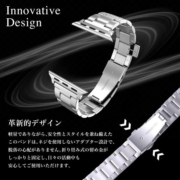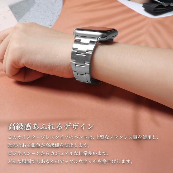 Apple Watch アップルウォッチ ステンレス製バンド シルバー オイスターブレスタイプ メタルリンクブレスレット Series11対応 スターライト追加