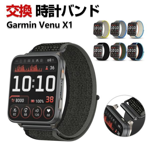 Garmin Venu X1 交換 バンド ナイロン素材 おしゃれ 幅24mm スポーツ ベルト 替えベルト 簡単装着 人気 ガーミン おすすめ 腕時計バンド 交換ベルト