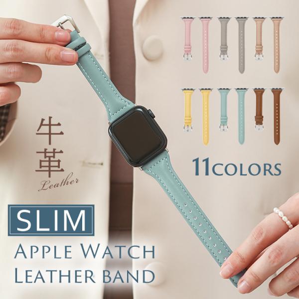 アップルウォッチ バンド レディース 本革 スリム レザー Apple watch series 8 7 6 5 4 SE2 SE シリーズ 3 2 ベルト 45mm 41mm 44mm 40mm 42mm 38mm バックル
