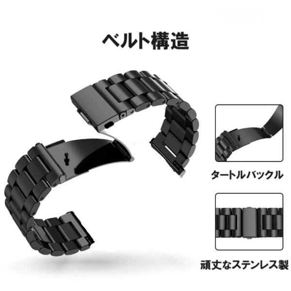 スマートウォッチ 22mm メタル バンド ベルト ブラック 黒 時計ベルト メタルブレス 腕時計 軽量 ステンレス 金属 メタル 蒸れない