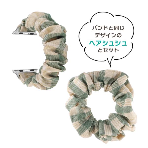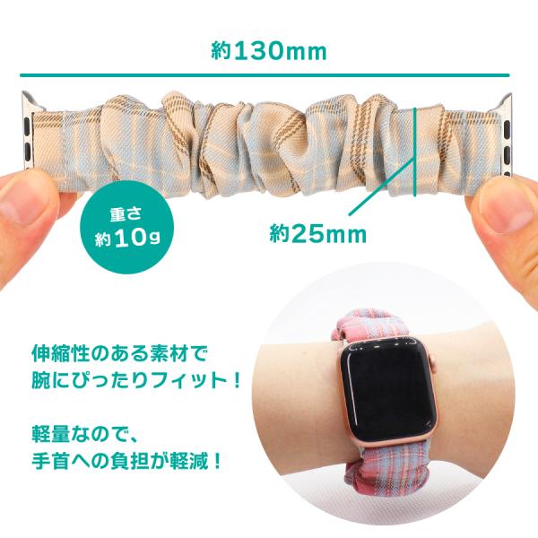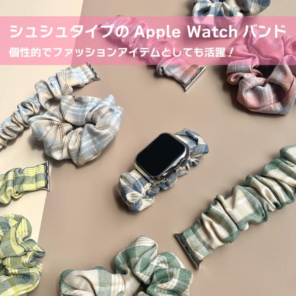 apple watch バンド レディース 42mm 41mm 40mm 38mm シュシュ ゴムバンド チェック柄 痛く ない 軽量 シュシュ付き シュシュバンド メンズ おしゃれ かわいい