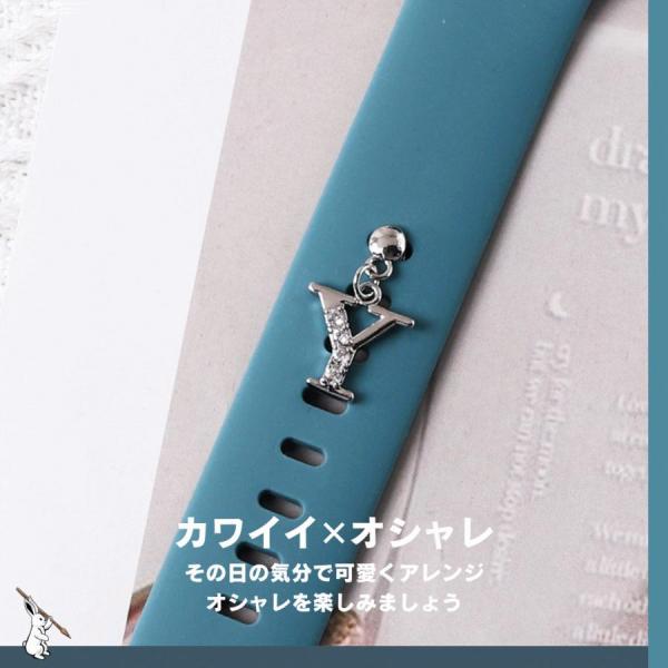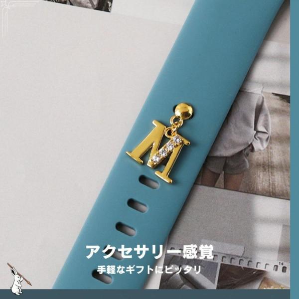 アップルウォッチアクセサリー apple watchアクセサリー イニシャル アルファベット チャーム ピン かわいい キラキラ レディース 穴付きバンド専用