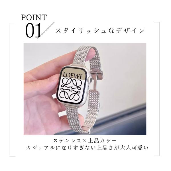 アップルウォッチ バンド ステンレス Apple Watch レディース ベルト スリム Series10 9 ultra 8 7 6 5 4 SE 49 45 44 42
