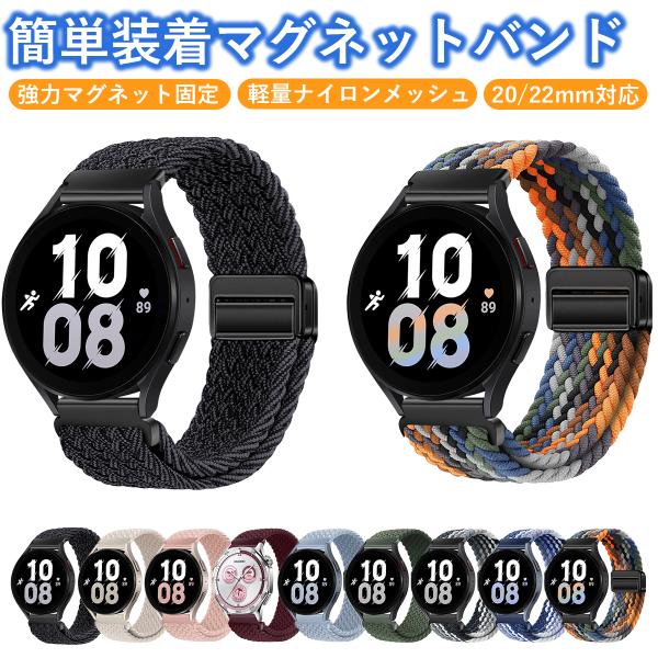 スマートウォッチ ベルト 22mm マグネット式 20mm バンド ナイロン ベルトループ 時計ベルト