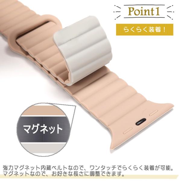 アップルウオッチ バンド シリコン マグネット Apple Watch 交換用ベルト シリコン素材 柔らか 磁石式 簡単装着 長さ調整可能 清潔 軽量 時計バンド 時計ベルト