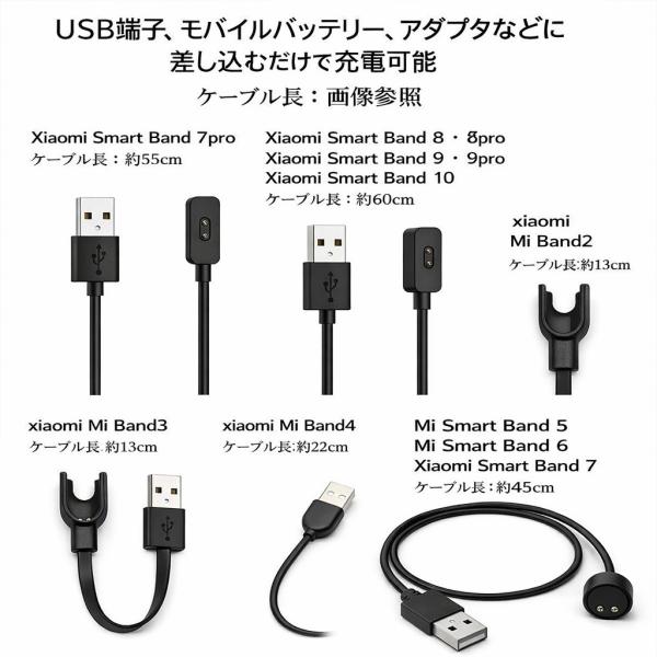 スマートウォッチ 充電ケーブル Xiaomi 対応 Smart Band 10 9 8 7 6 5 4 3 2 Pro M2-M10 マグネット式 USB 充電器 充電安定 断線防止 高耐久 予備用 持ち運び