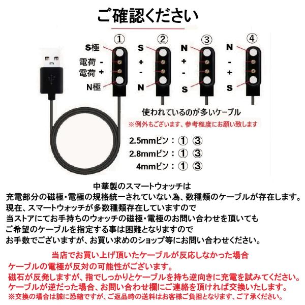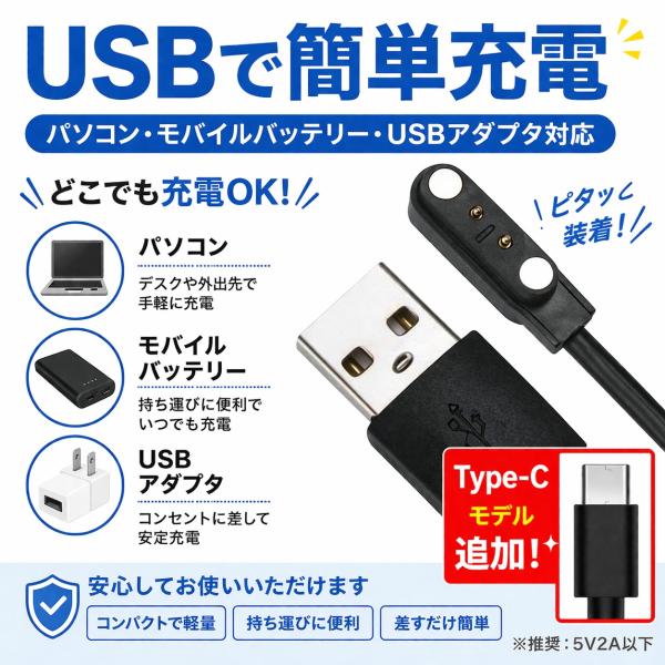 スマートウォッチ 充電ケーブル 磁気 マグネット USB Type-C 2ピン 4ピン 互換 汎用 専用 交換用 予備 充電器 外れ防止 高耐久