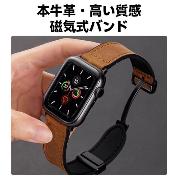 Apple Watch アップルウォッチ バンド ベルト マグネット 本牛革 レザー シリコン 高級 おしゃれ 40 44 45 46 49 41 42 38 mm 女性 男性 メンズ レディース