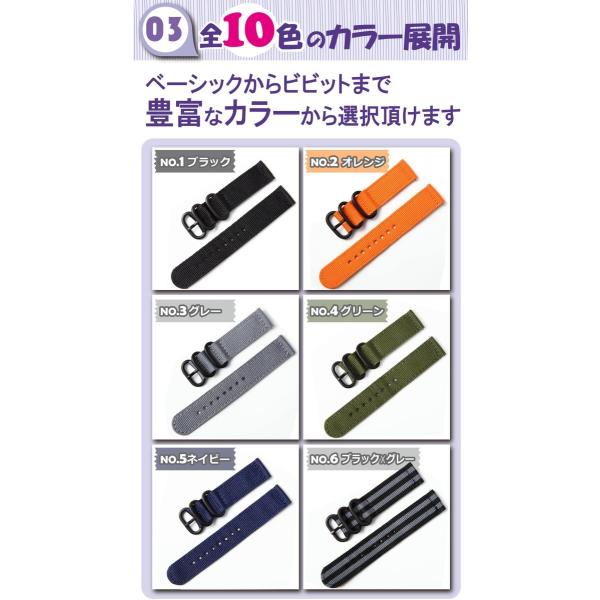 時計 ベルト バンド ナイロン 18mm 20mm 22mm 24mm イージークリック PKT2-4F