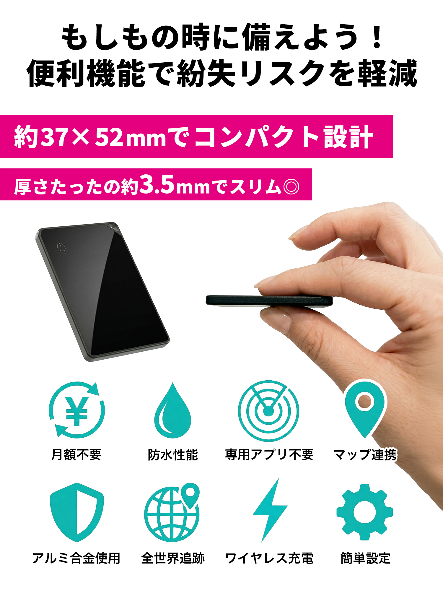 スマートタグ カード型 iPhone エアタグ カード 小型 追跡 紛失防止タグ MFi認証済み 財布 スマートトラッカー 充電式 コンパクト