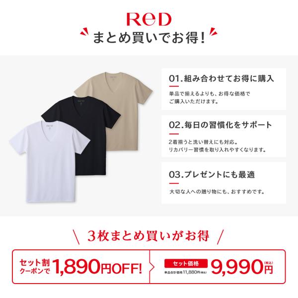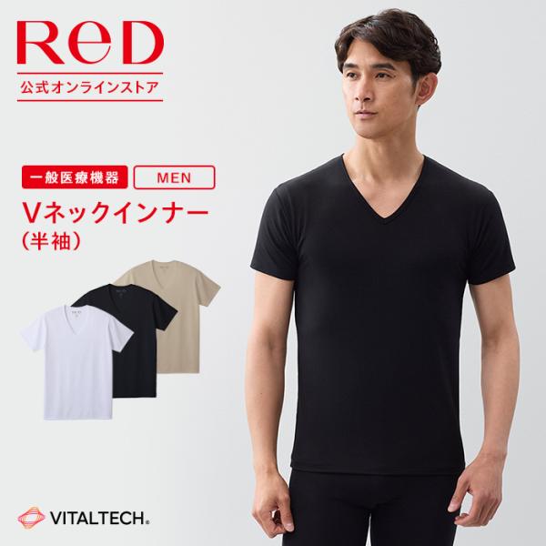 リカバリーウェア ReD レッド公式 Vネック インナー 半袖 疲労回復 血行促進 遠赤外線健康 プレゼント ギフト 一般医療機器 メンズ 男性