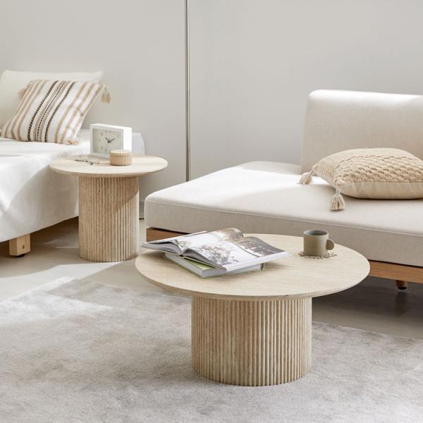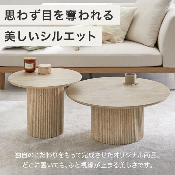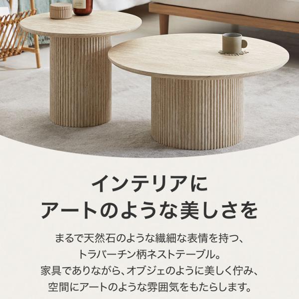 ネストテーブル 丸 ローテーブル テーブル センターテーブル 2個セット トラバーチン 石柄 おしゃれ 丸テーブル 円形 丸型 円型 サイドテーブル 一本脚