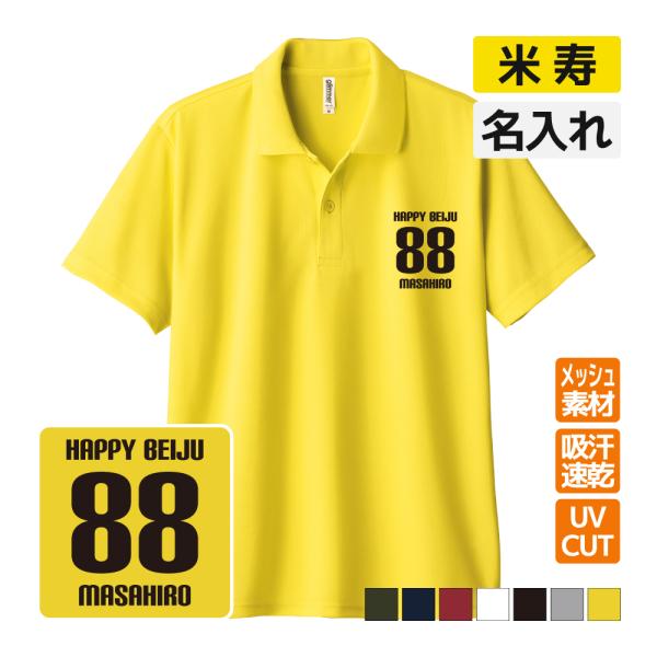 米寿祝い ドライポロシャツ 名入れ無料 記念品 (HAPPY BEIJU) 男性・女性 ギフト プレゼント 両親へ 孫から サプライズ 誕生日 88歳のお祝い S M L LL 3L 4L 5L
