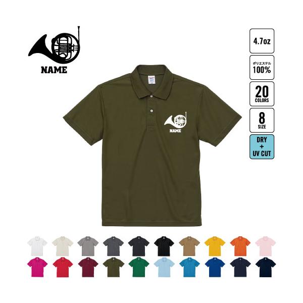 ホルン 名入れドライポロシャツ 襟付き プラクティスシャツ 運動着 ポリエステル100 紫外線防止 UVカット 楽器 吹奏楽 管楽器
