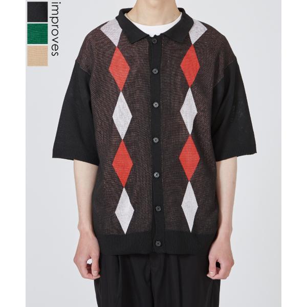 半袖シャツ メンズ ニット カーディガン ポロ アーガイル ダイヤ チェック 大きめ オーバーサイズ カジュアル キレイめ シンプル ベーシック おしゃれ