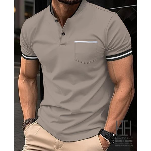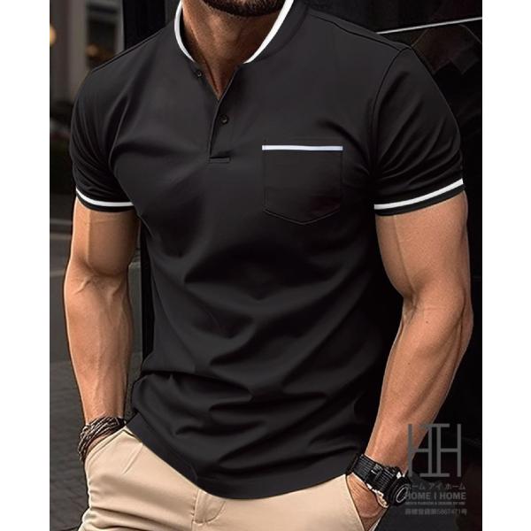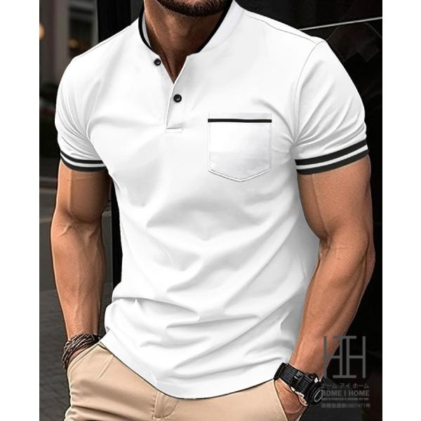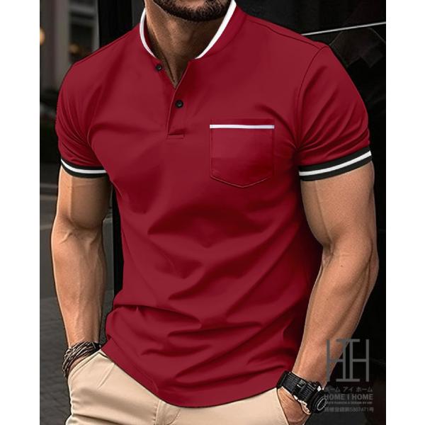 シャツ ポロシャツ メンズ 半袖 立ち襟 半袖ポロ ライン入り ポケット カラー配色 ゴルフ 大きいサイズ アメカジ おしゃれ スポーツ サマー 夏 夏服