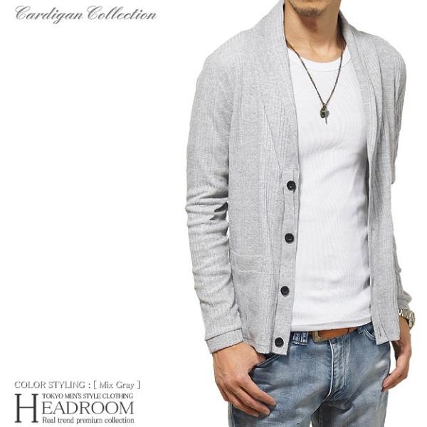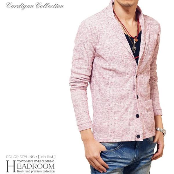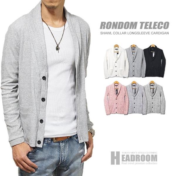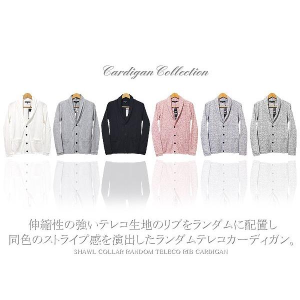 カーディガン メンズ 長袖 ストレッチ ランダムテレコ ショールカラー リブ コットン カーデ