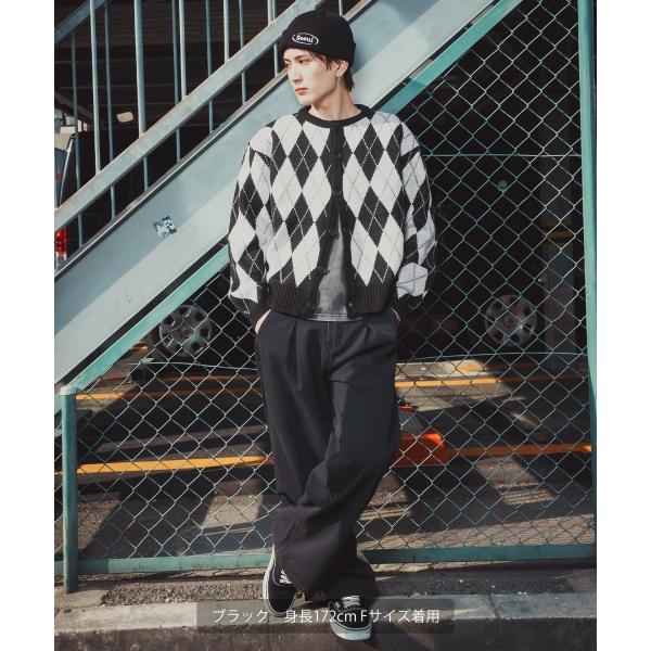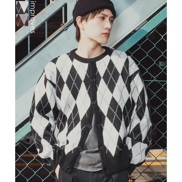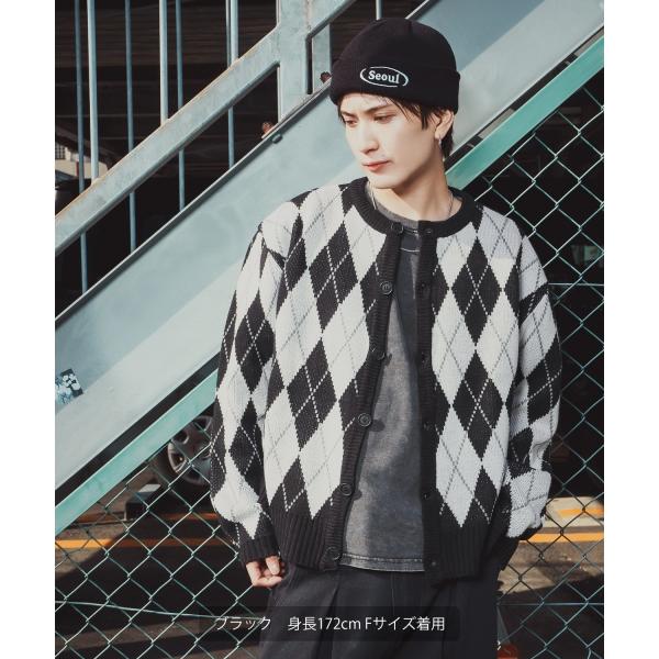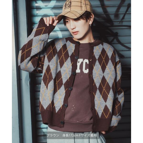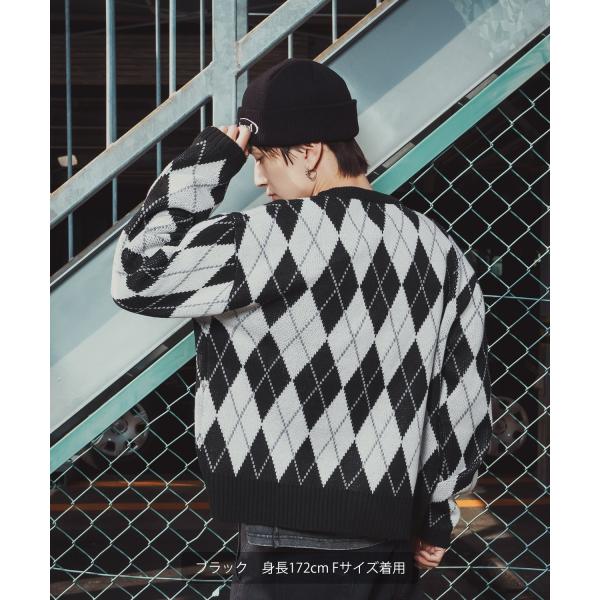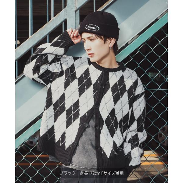 アーガイルカーディガン メンズ レディース ニット 総柄 オーバーサイズ ビッグシルエット 韓国ファッション ストリート 古着MIX 秋 冬