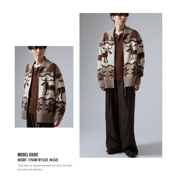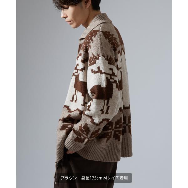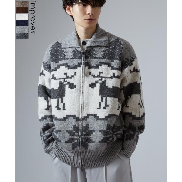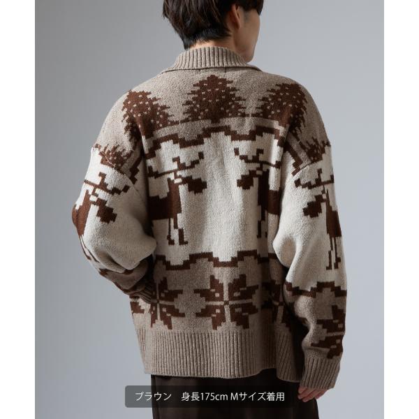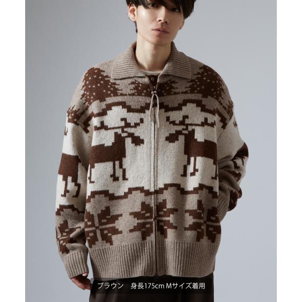 セーター メンズ ノルディック柄 カウチンニット ジップ セーター アメカジ カジュアル ベーシック 大人カジュアル ブラウン ネイビー グレー