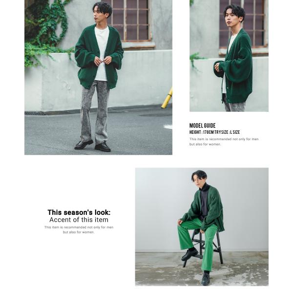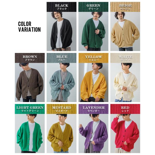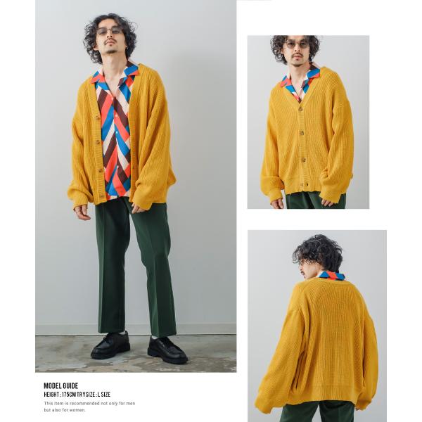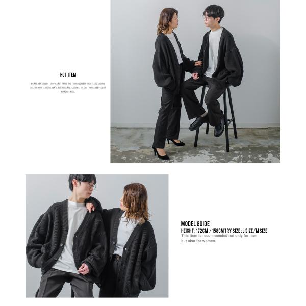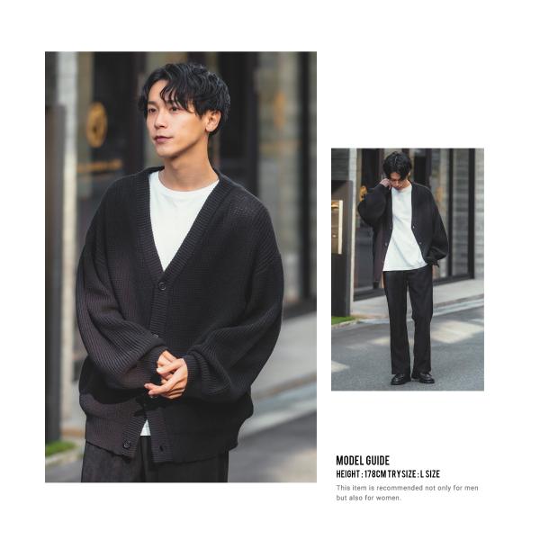 オーバーサイズ Vネックカーディガン メンズ ハイバルキー 片畦 ニット 羽織 あぜ編み ゆったり バルーンシルエット きれいめカジュアル
