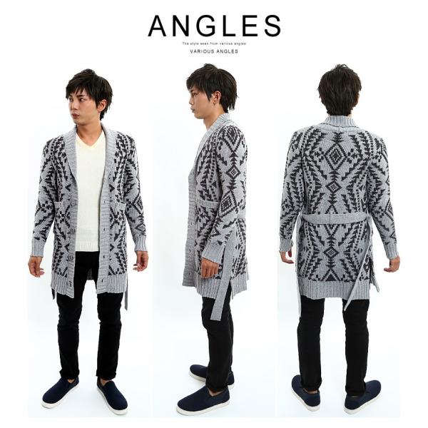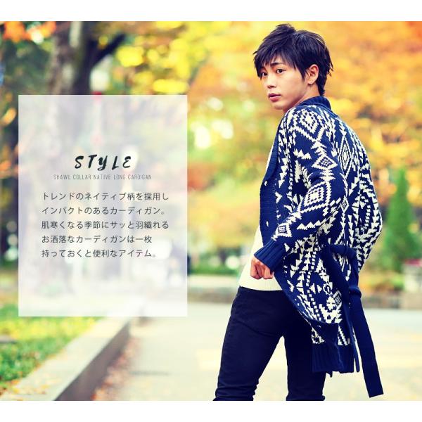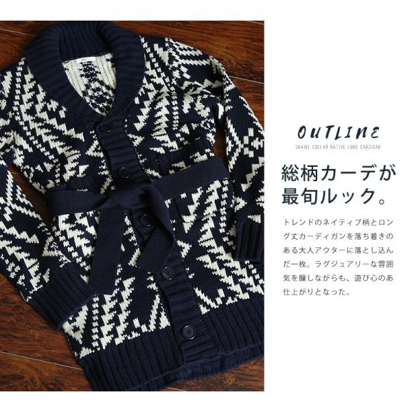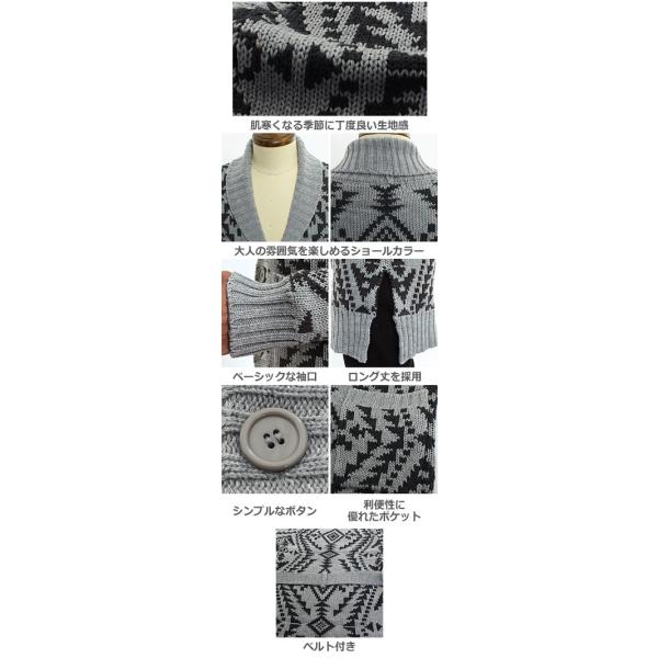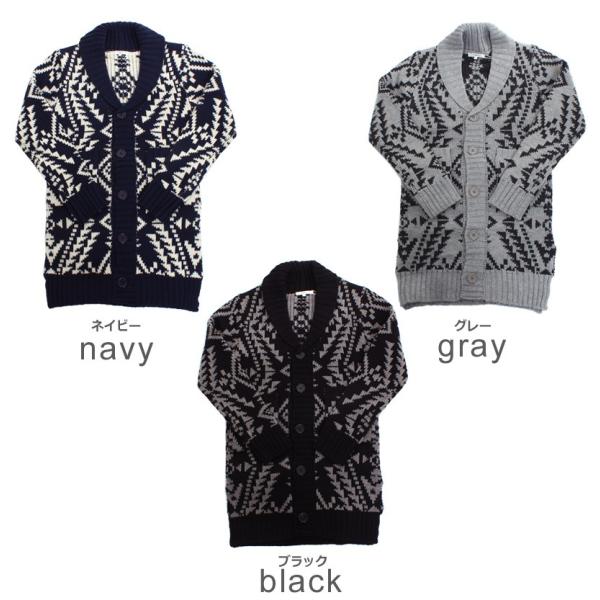 コーディガン メンズ カーディガン ロング丈 長袖 ネイティブ柄 ニットカーディガン