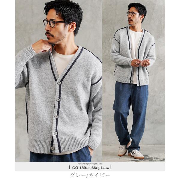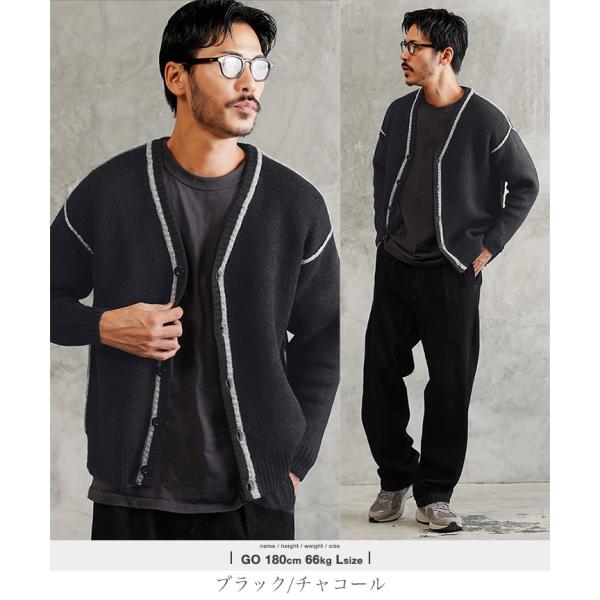 カーディガン メンズ トップス ニットカーディガン 配色ライン ふわもち ウール混 軽量 起毛 秋 秋服 冬 冬服