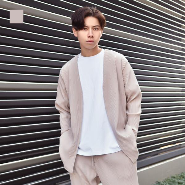 サマーカーディガン メンズ ロング 薄手 春夏秋 セットアップ(別売) 韓国ファッション モード 白 黒 ホワイト グレージュ ブラック プリーツ M L XL 23122