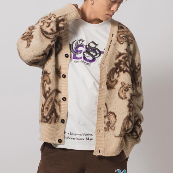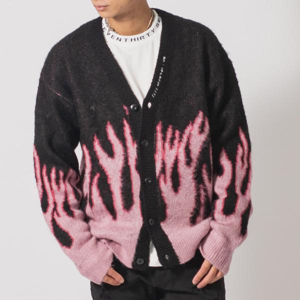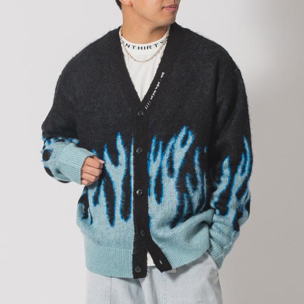 モヘアタッチ総柄ビッグカーディガン メンズ ビッグシルエット オーバーサイズ ストリート系 韓国ファッション 韓国系 RE730 セブンサーティー