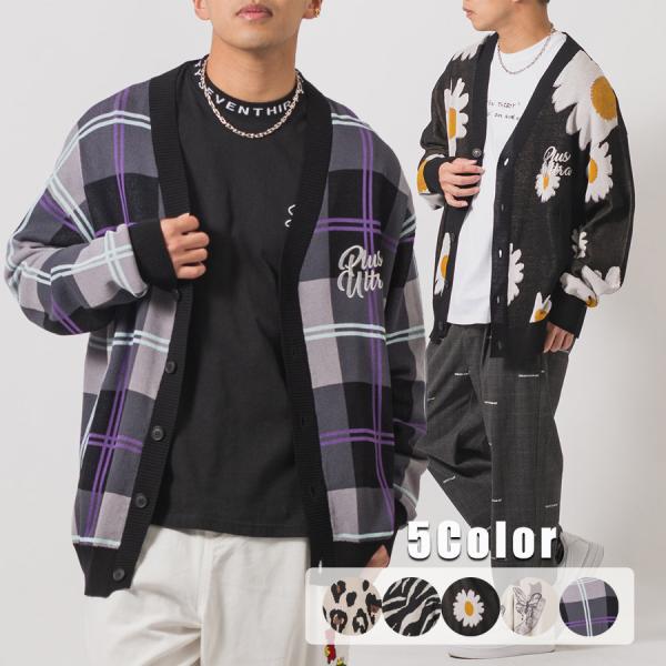総柄ビッグニットカーディガン メンズ ビッグシルエット オーバーサイズ ストリート系 韓国ファッション 韓国系 RE730 セブンサーティー