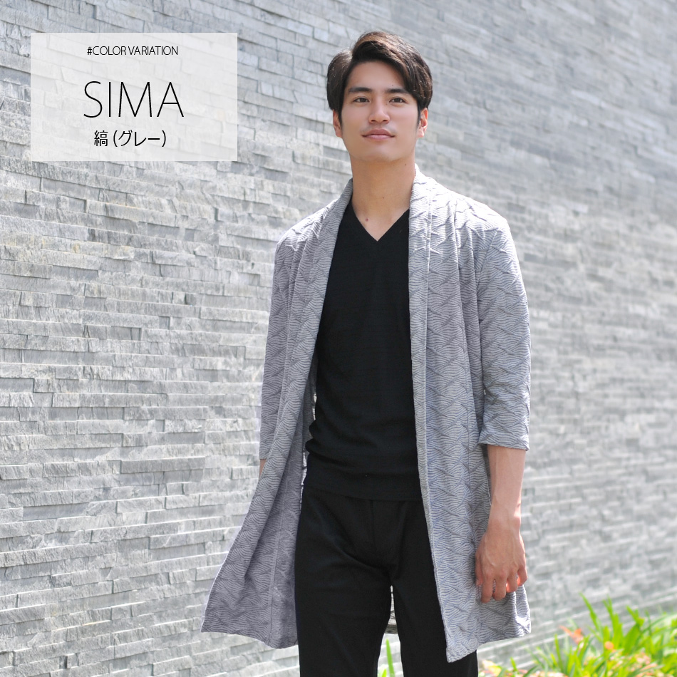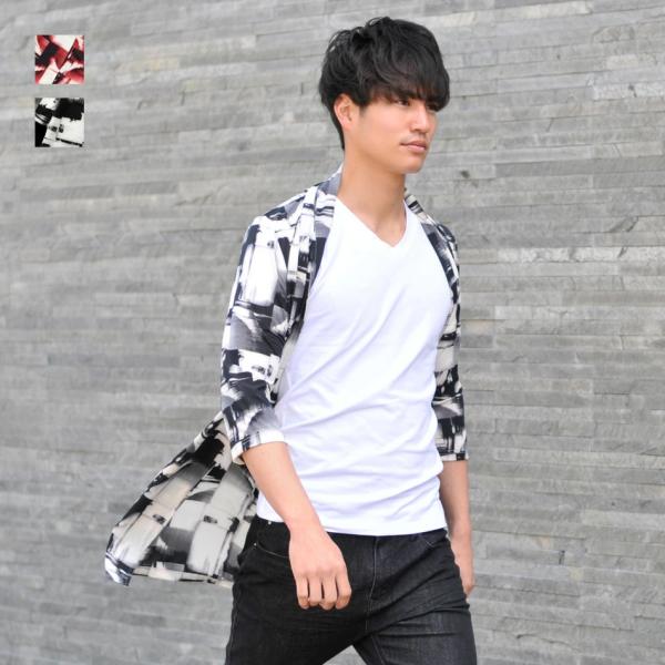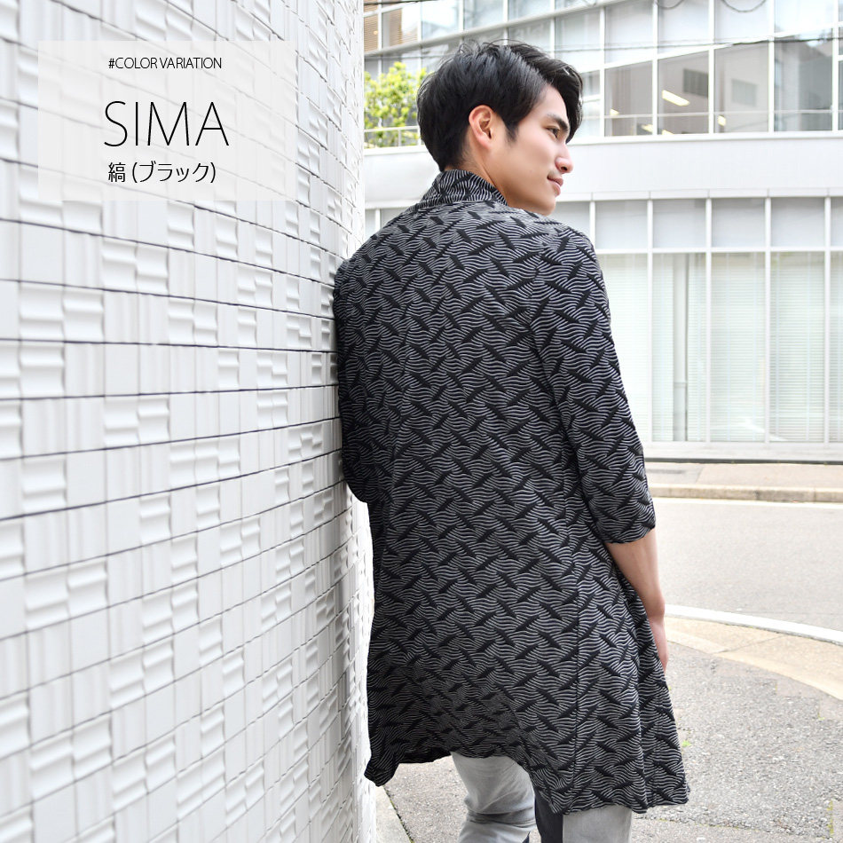 サマー カーディガン メンズ サマーニット ロングカーディガン 薄手 7分袖 半袖 ロング丈 総柄 春夏秋 グレー ブラック レッド 赤 黒 M L XL 21138