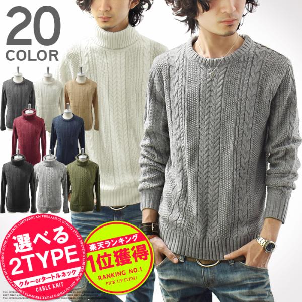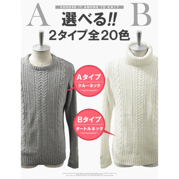 ニット メンズ セーター 長袖 クルーネック タートルネック ケーブル編み トップス 無地 カジュアル 秋 冬 服