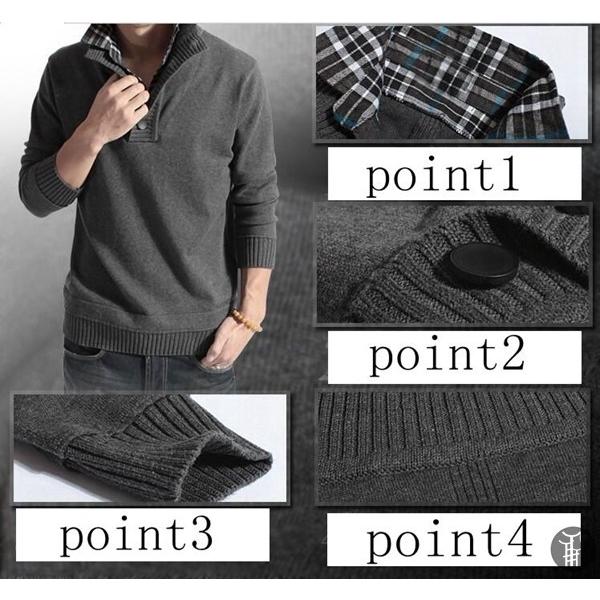 Vネックニットセーター ニット メンズ プルオーバー セーター 重ね着風 ニットウェア Vネック 無地 トップス 長袖 春 大人
